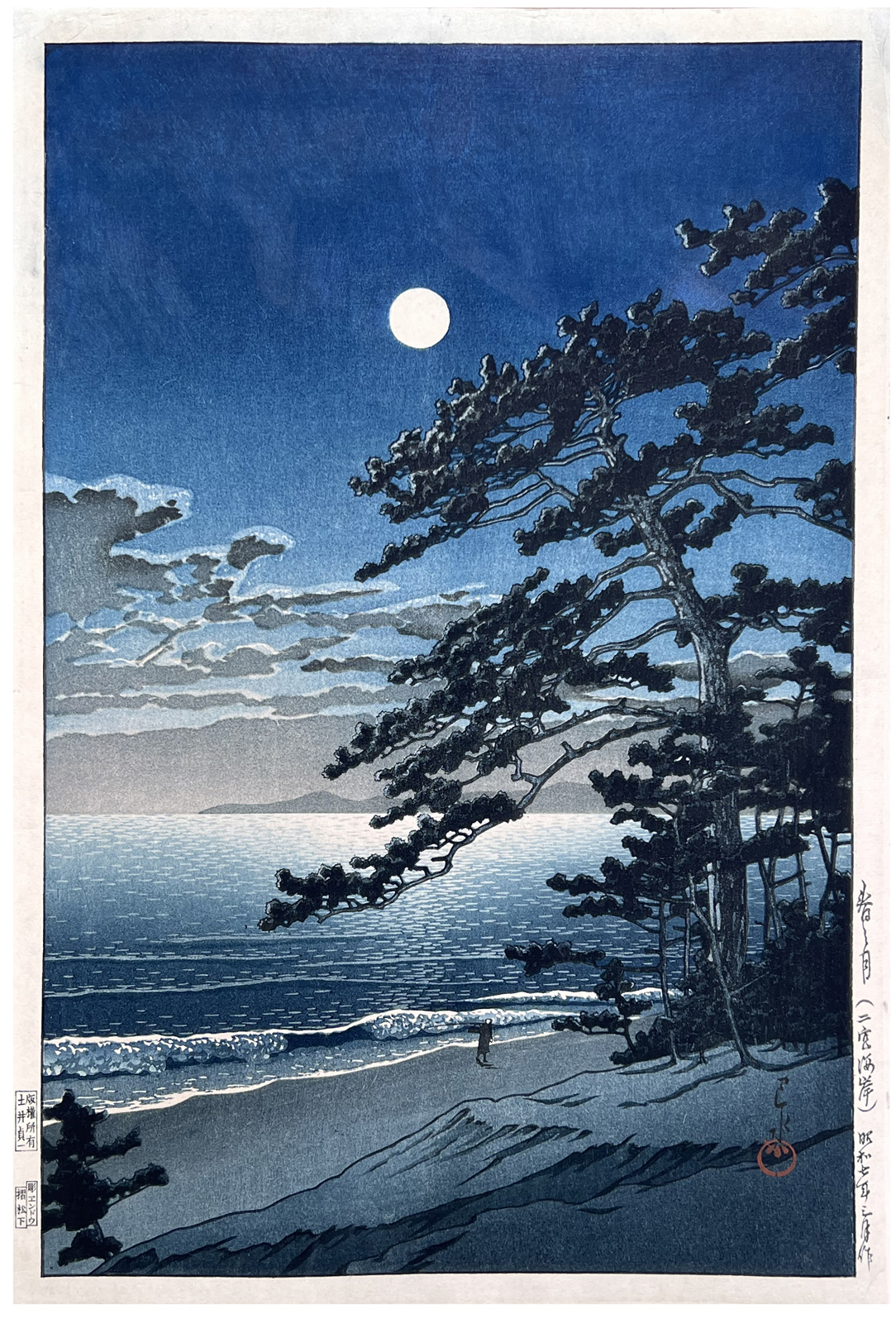 Woodblock Print Title: Spring Moon at Ninomiya Beach