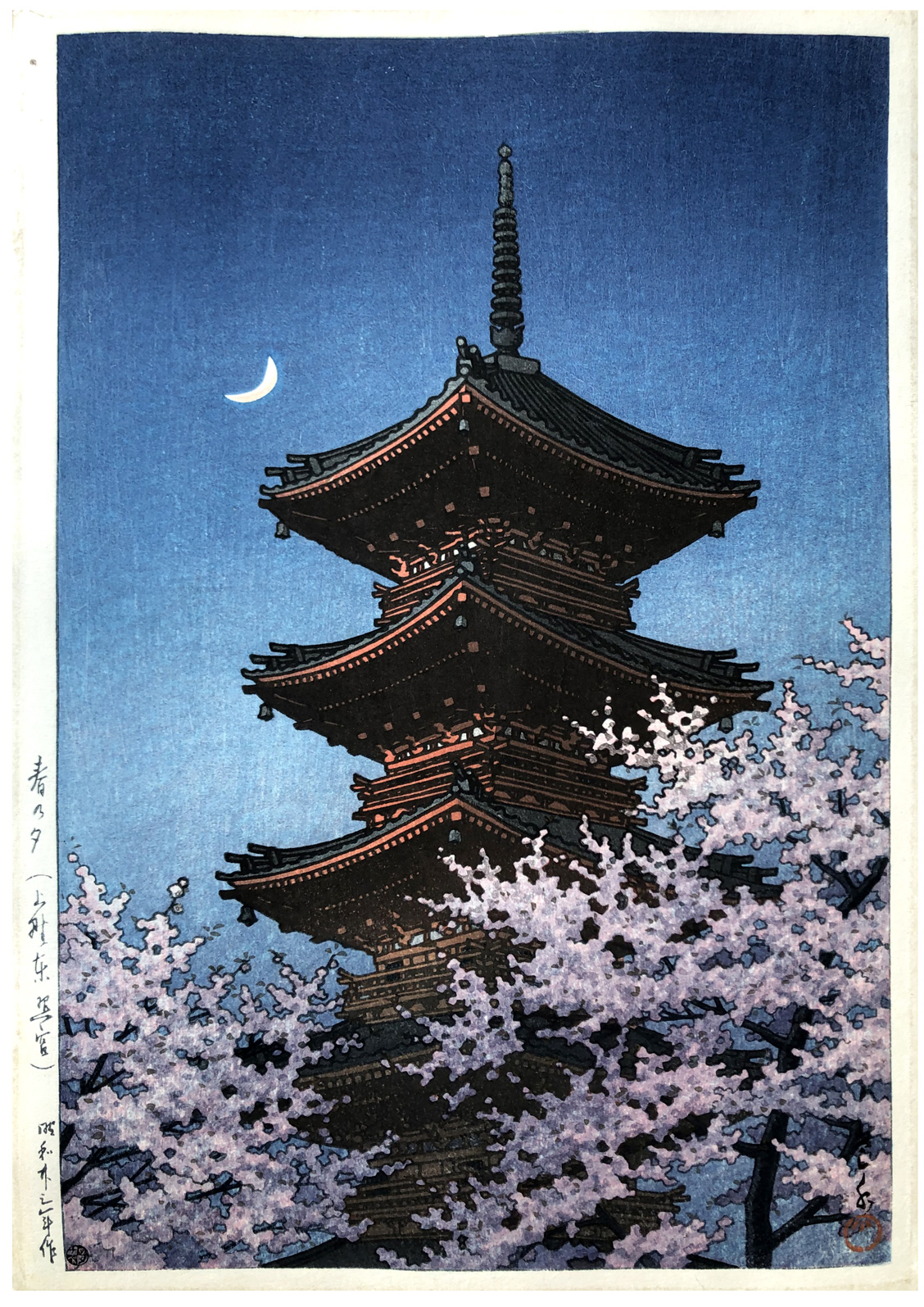 Woodblock Print Title: Spring Evening at the Tôshôgû Shrine in Ueno
