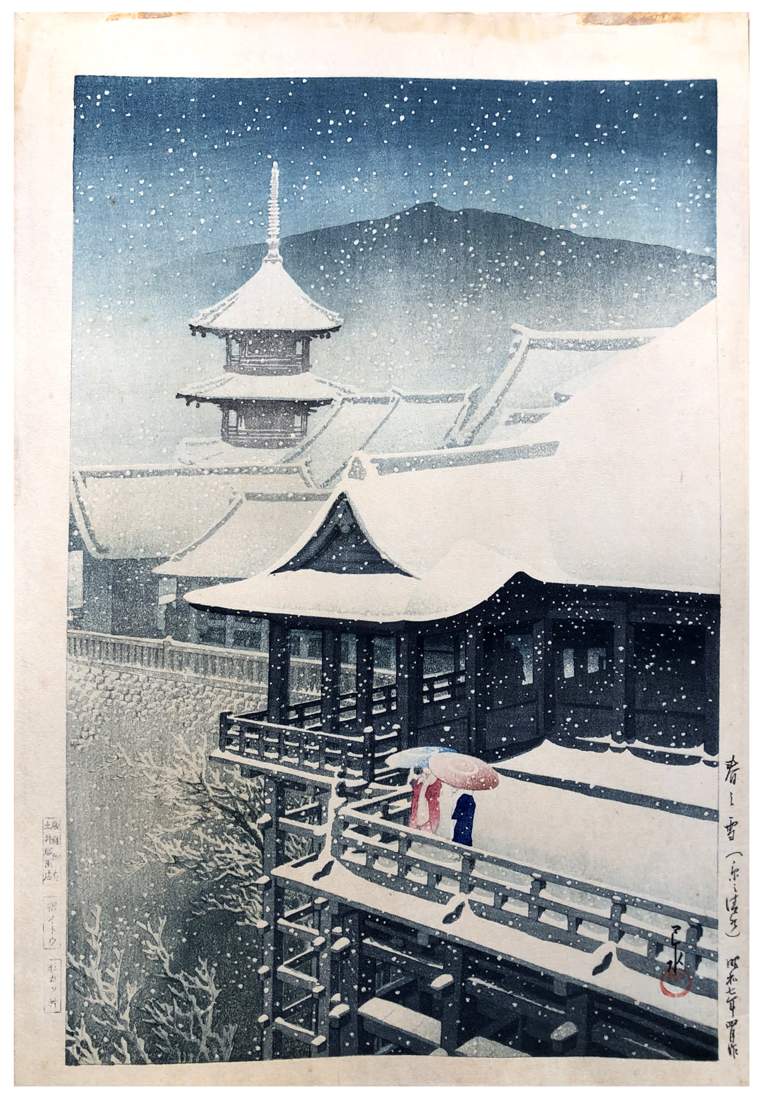 Woodblock Print Title: Spring Snow at Kiyomizu Temple