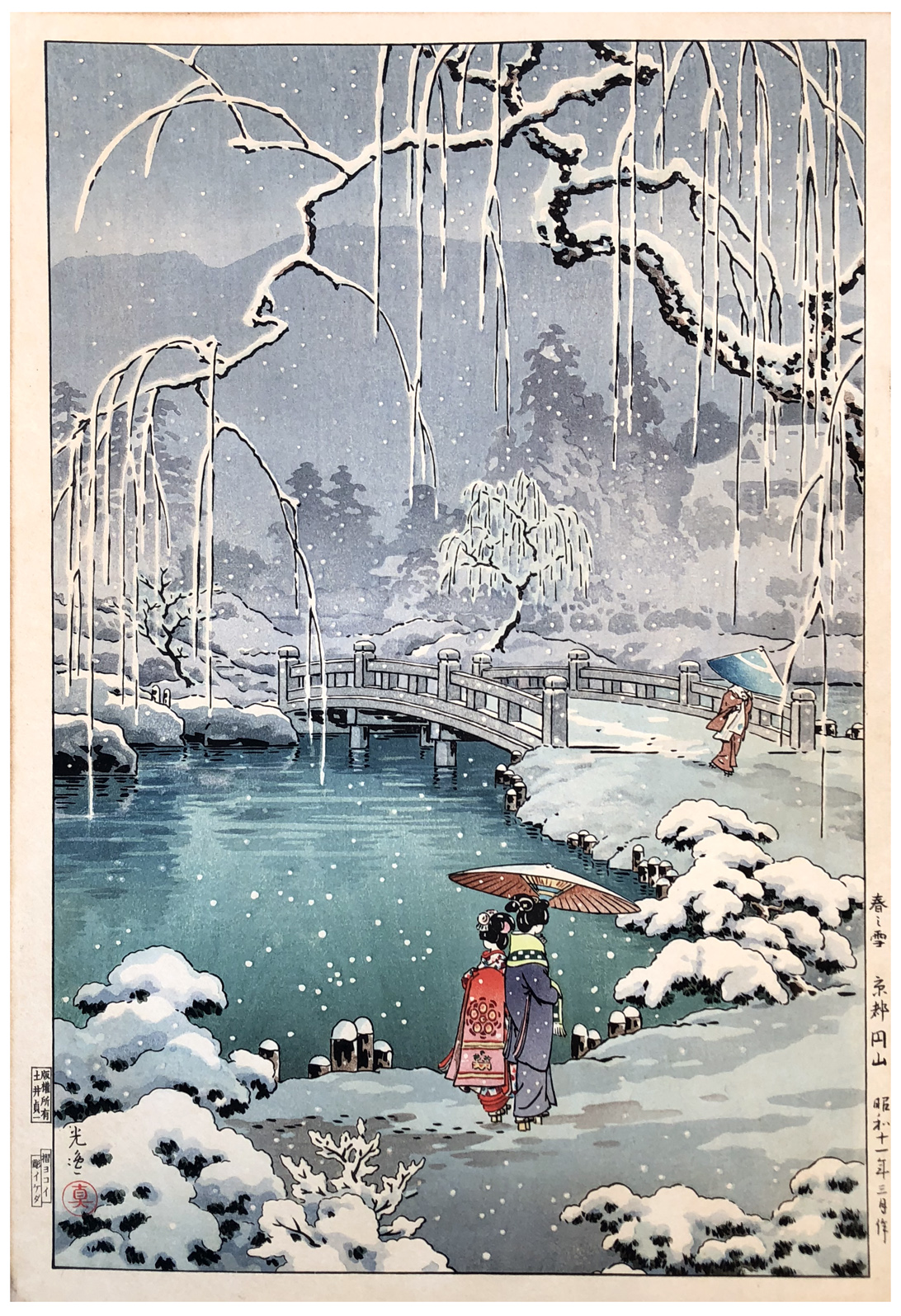 Woodblock Print Title: Spring Snow at Maruyama in Kyoto
