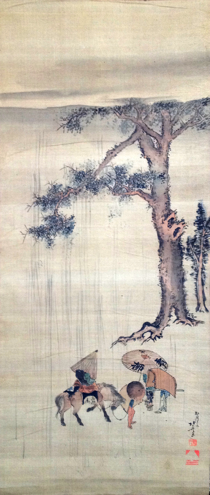 Notes: This original painting is absolutely beautiful. It is a silk painting scroll signed Hokusai Ga, mounted on brocade as a scroll.