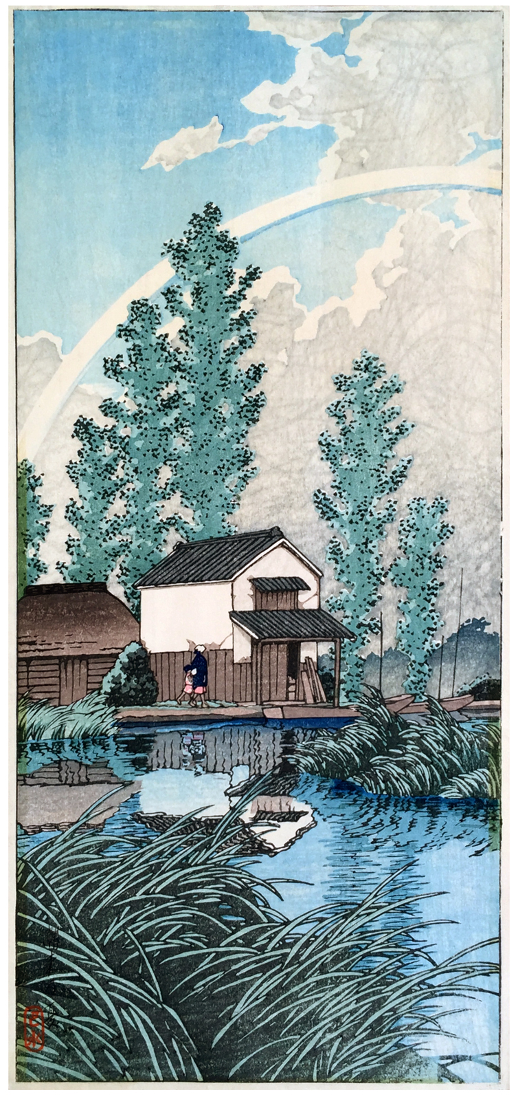 Condition: Some color fading, mild matte burn from prior mounting. Some thinner area in the upper section. Good overall condition.