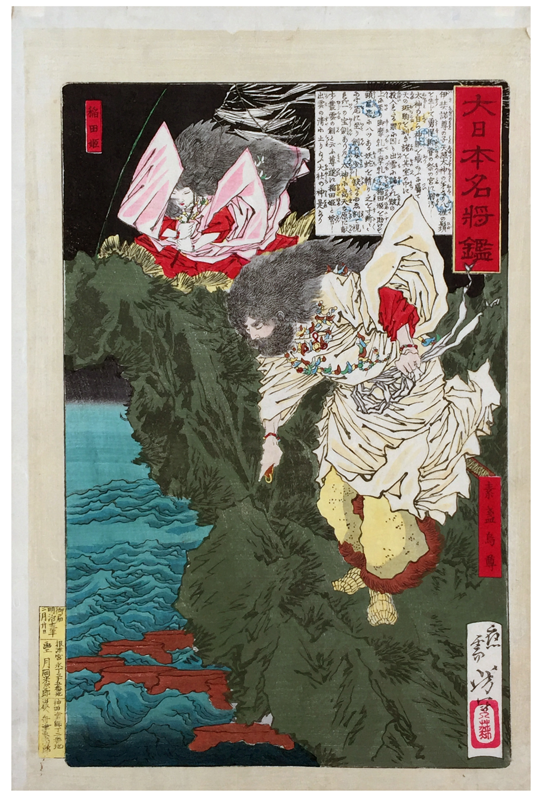 Woodblock Prints Title: Susanoo no Mikoto and Inadahime from the series Mirror of Famous Generals of Japan.