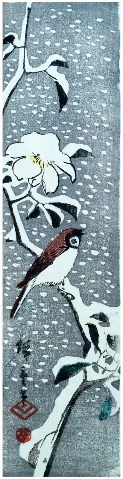 Notes: Extremely rare bird / snow scene by Ando Hiroshige, in perfect condition.