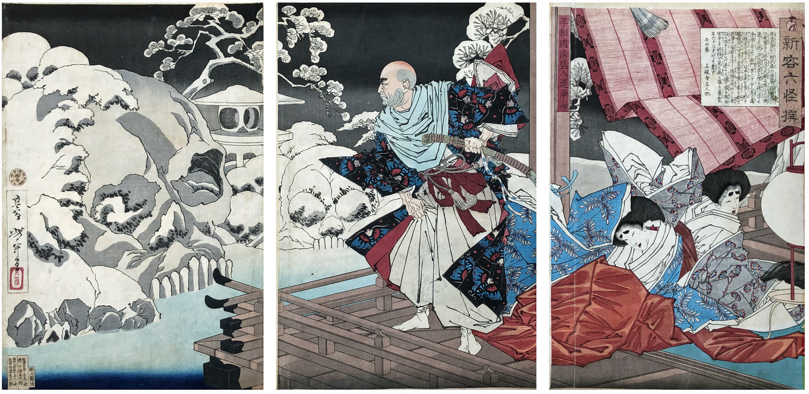 Woodblock Print Title: Taira no Kiyomori and Skulls in Snow