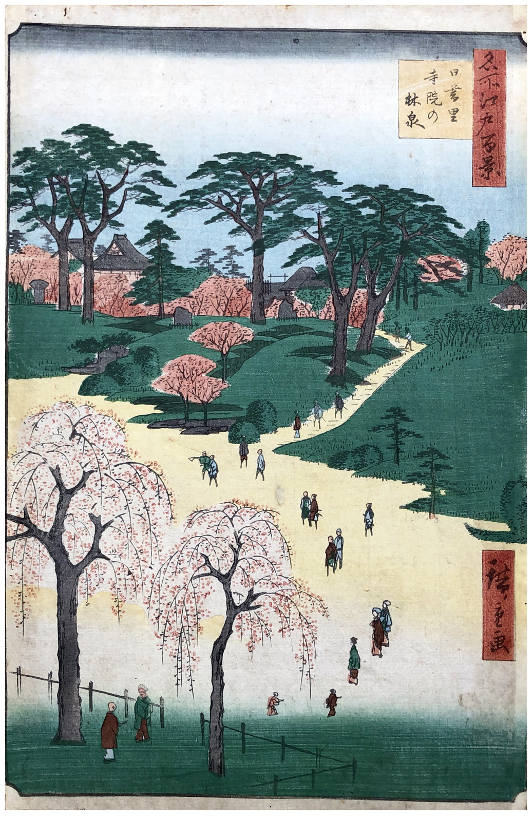 Temple Gardens, Nippori (Nippori jiin no rinsen), from the series One Hundred Famous Views of Edo (Meisho Edo hyakkei)