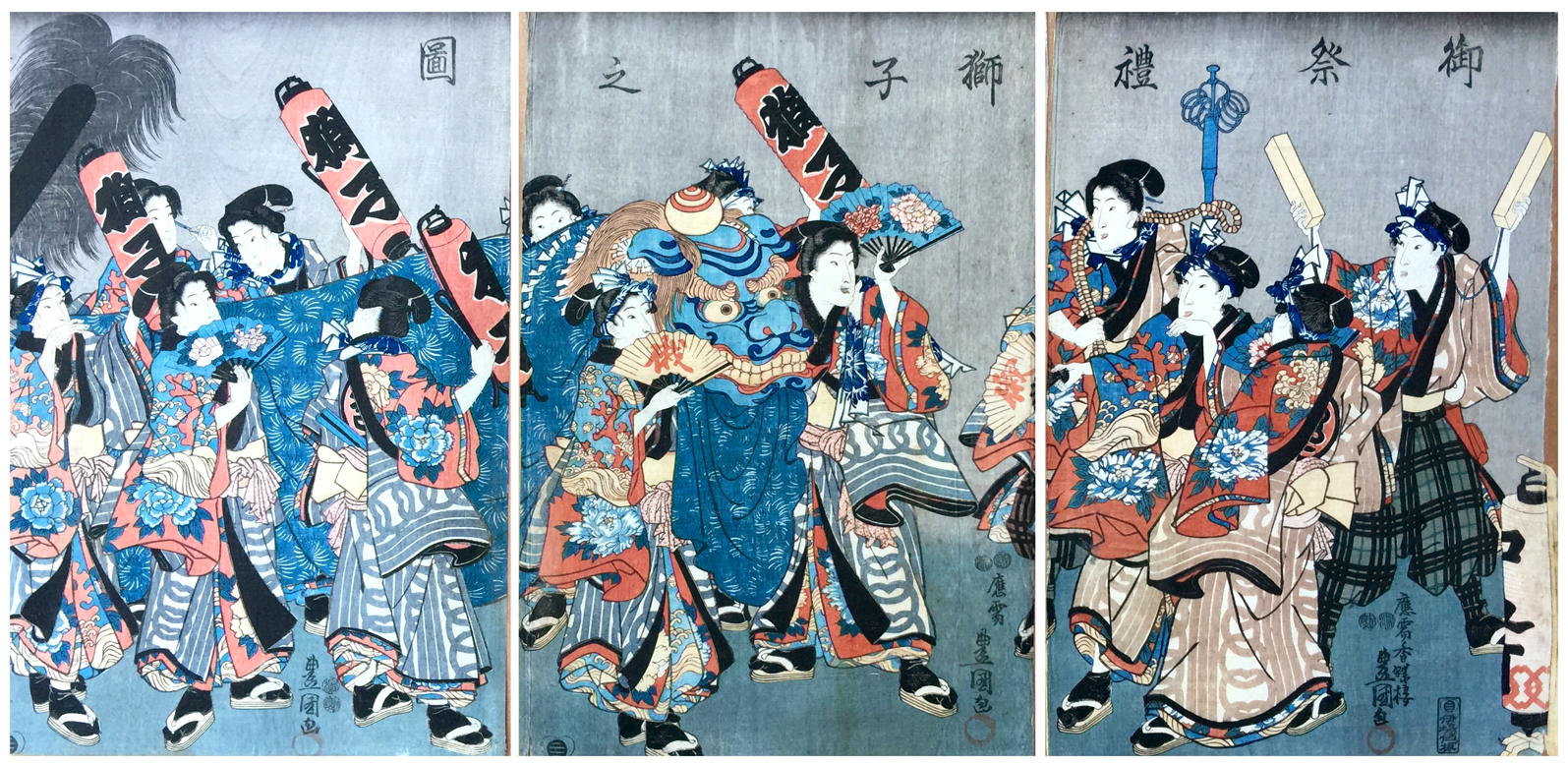 The Procession by Utagawa Kunisada Triptych