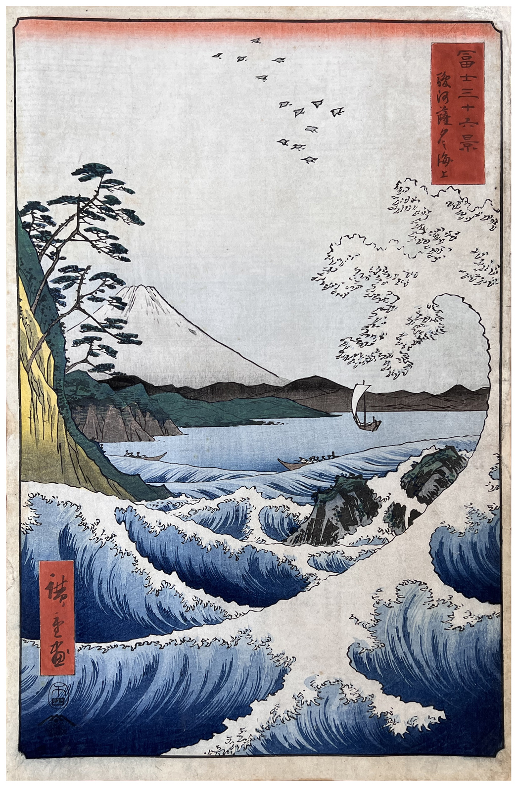Woodblock Print Title: The Sea off Satta in Suruga Province (Suruga Satta kaijô), from the series Thirty-six Views of Mount Fuji (Fuji sanjûrokkei)