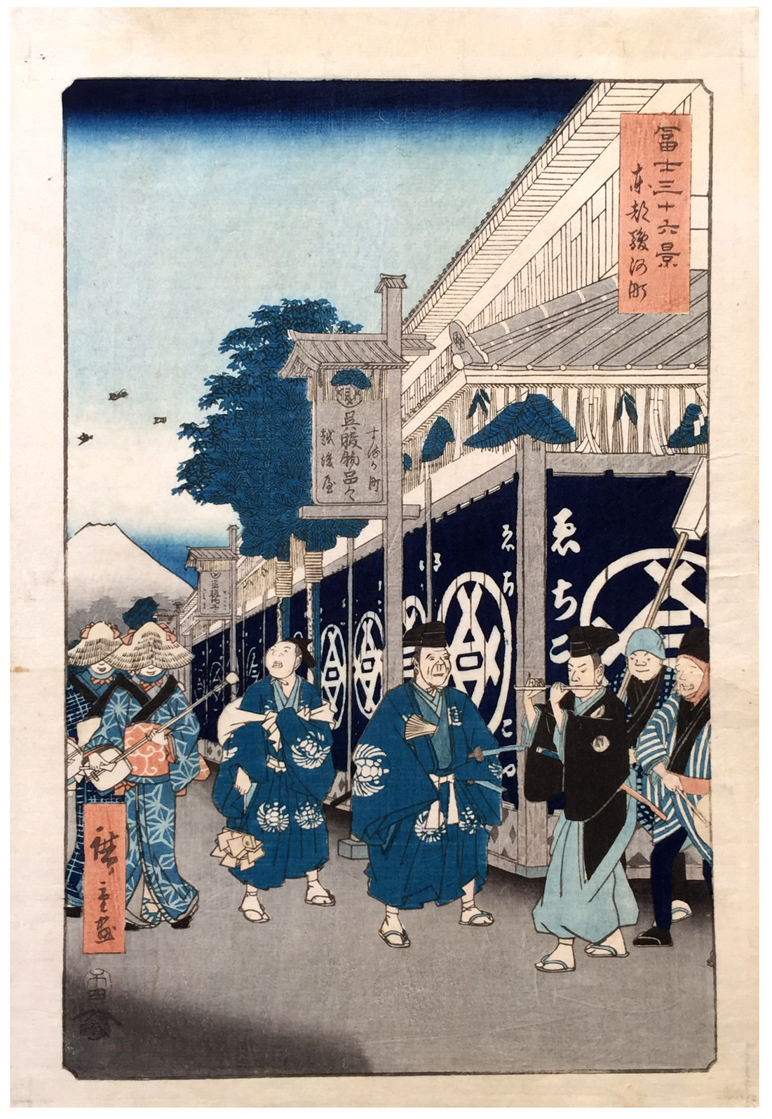 Woodblock Prints Title: The Suruga District in Edo (Tôto Suruga-chô), from the series Thirty-six Views of Mount Fuji (Fuji sanjûrokkei)