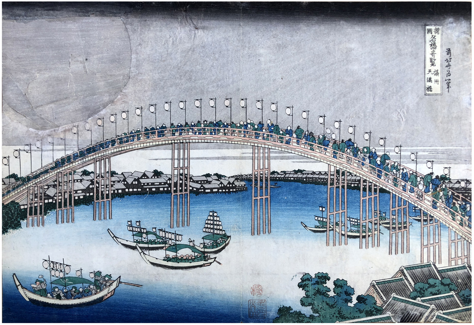 Woodblock Prints Title: The Tenman Bridge in Settsu Province (Sesshû Tenmanbashi), from the series Remarkable Views of Bridges in Various Provinces (Shokoku meikyô kiran)