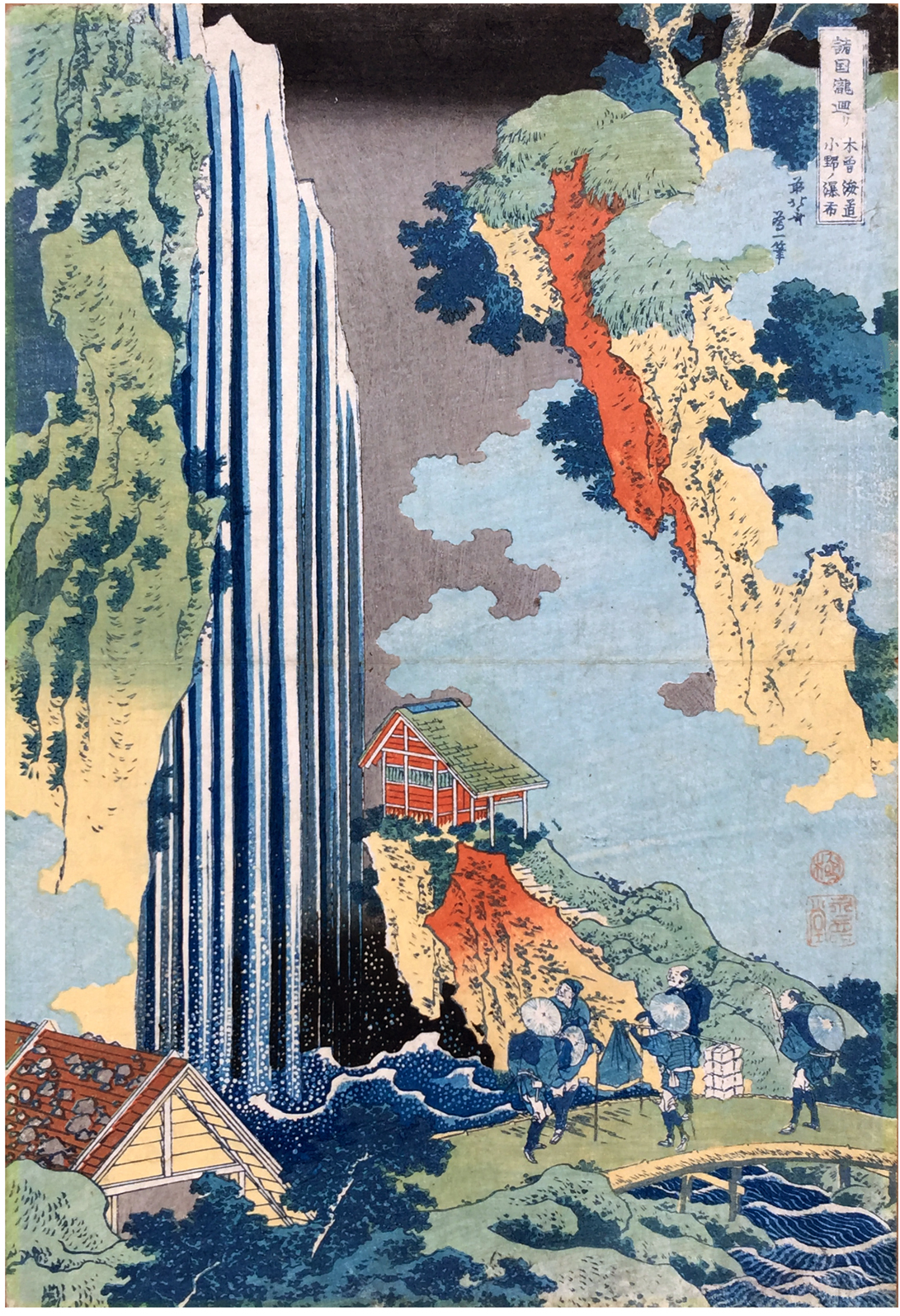 Woodblock Prints Title: The Waterfall at Ono on the Kisokaidô Road (Kisokaidô Ono no bakufu)
