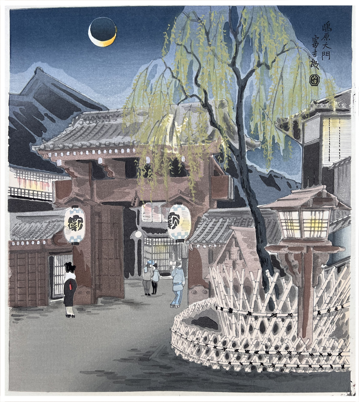Woodblock Print Title: November, The Willow Tree by the gate of the Shimabara