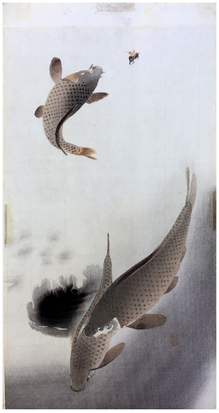 Three Carps One jumping for a Fly by Ohara Koson