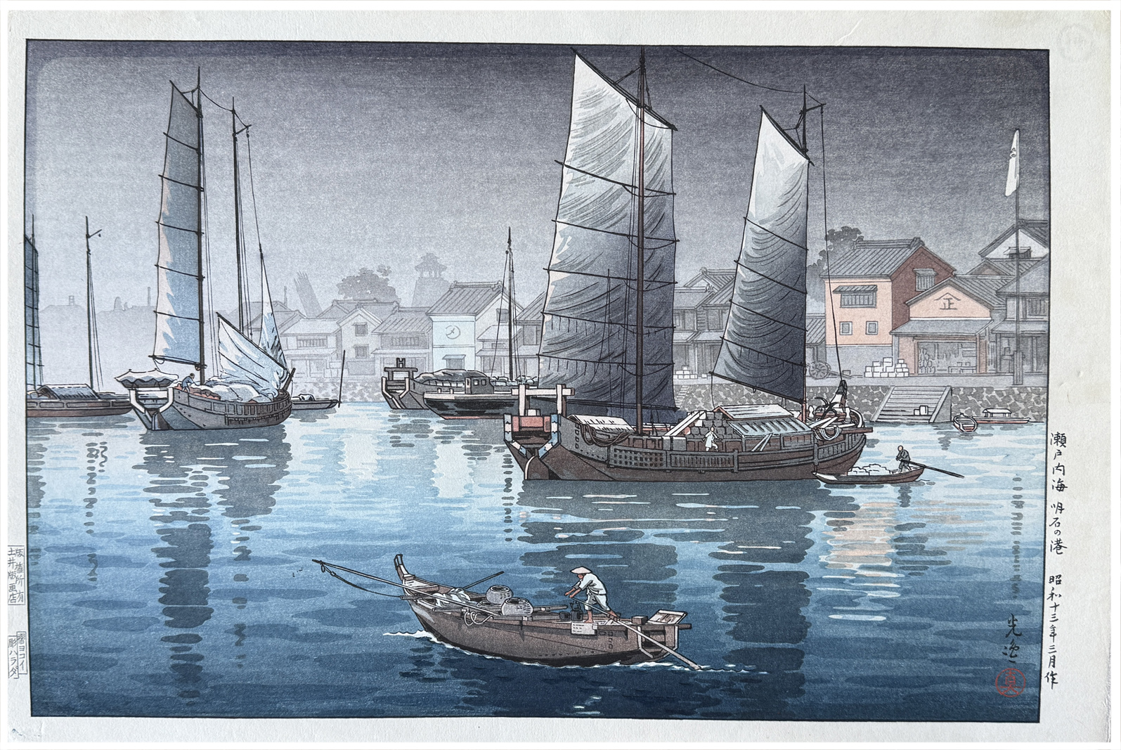 Woodblock Print Title: Seto Inland Sea- Akashi Bay