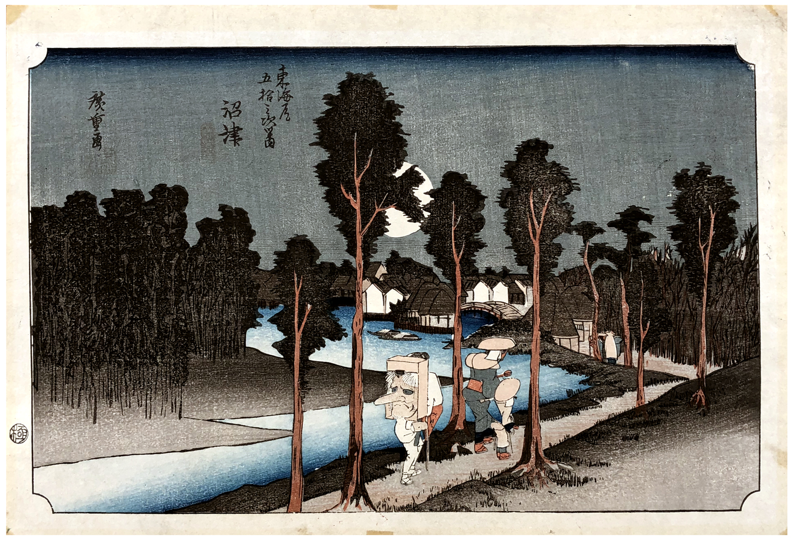 Woodblock Prints Title: 53 stations of the Tokaido 'Hoeido' # 13: Twilight at Numazu