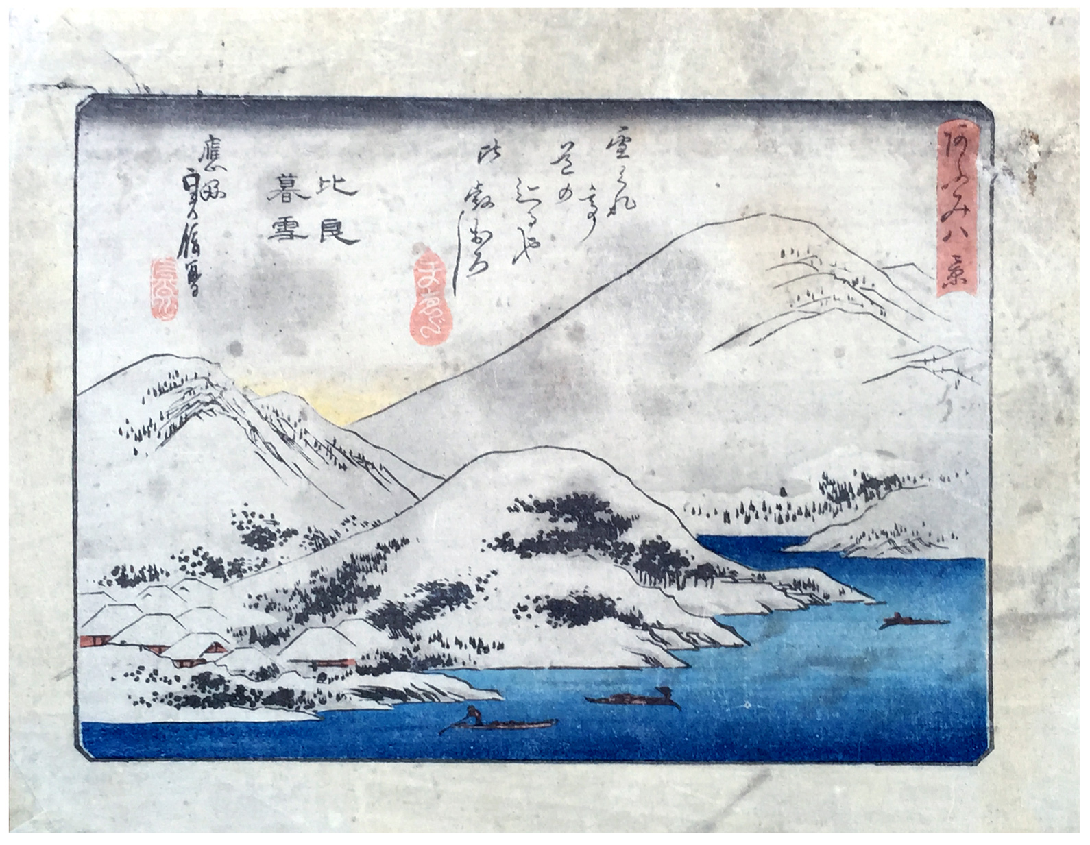 Woodblock Prints Title: Twilight Snow at Mount Hira from the 8 views of Omi series.