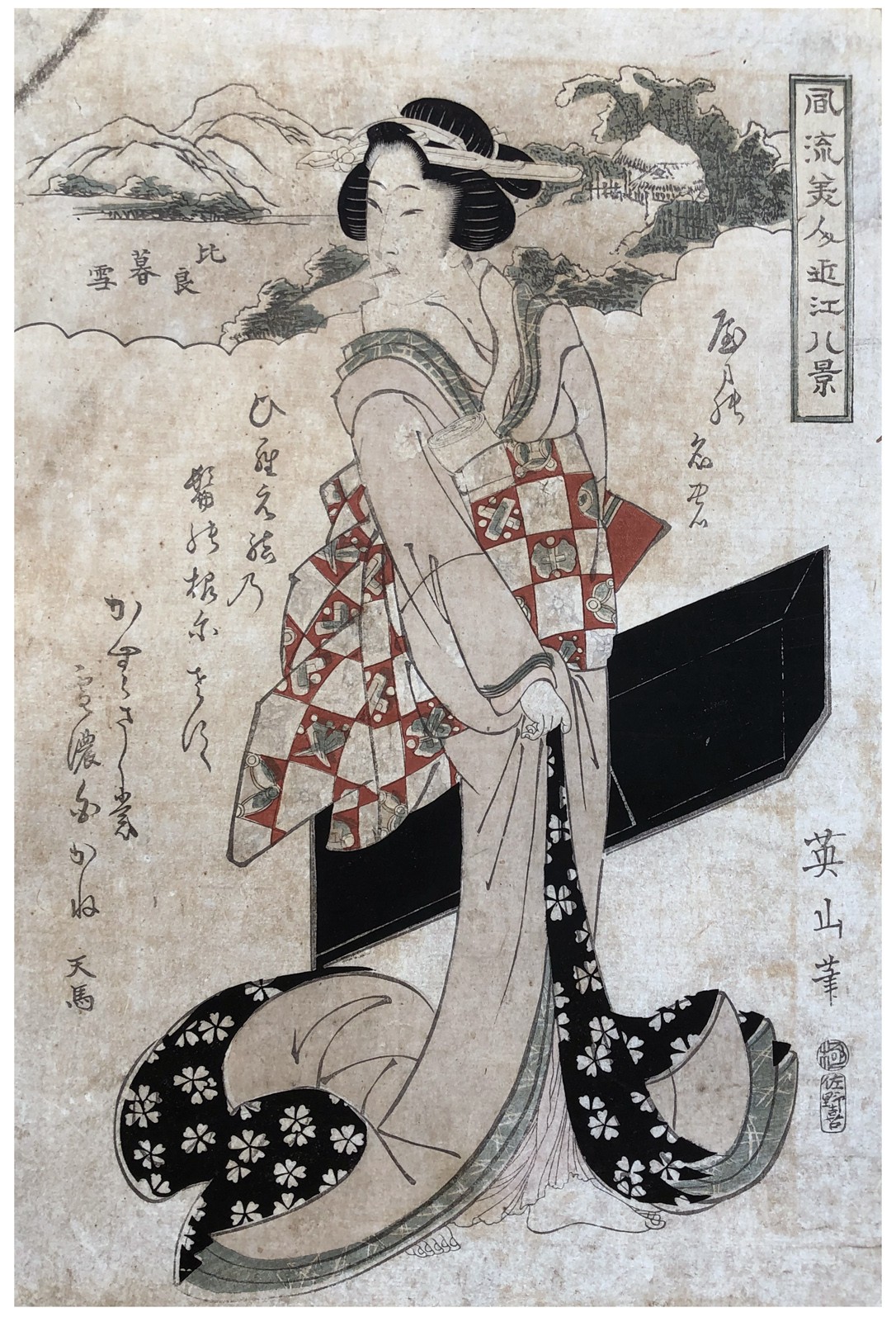 Woodblock Print Title: Twilight Snow on Mount Hira (Hira bosetsu), from the series Fashionable Beauties for the Eight Views of Ômi (Fûryû bijin Ômi hakkei)