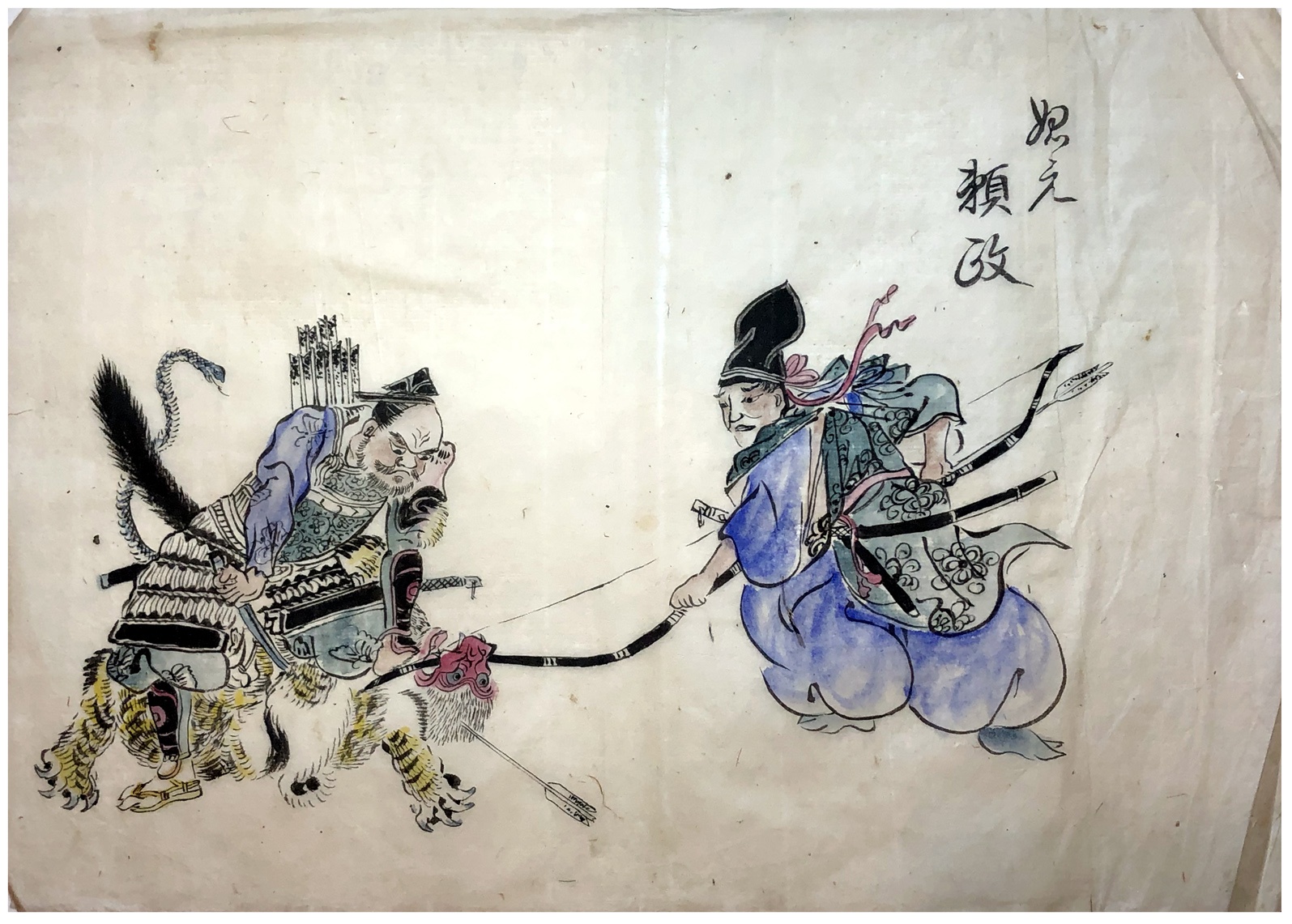 Woodblock Print Title: Two Archers Hunting a Monkey