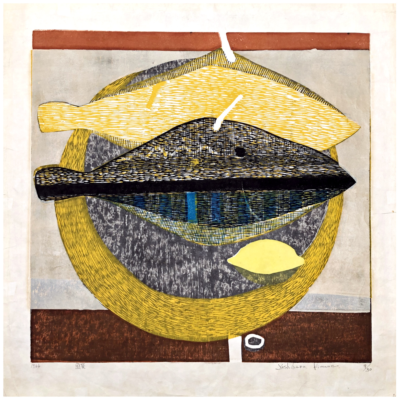 Woodblock Print Title: Two Fishes and a Lemon