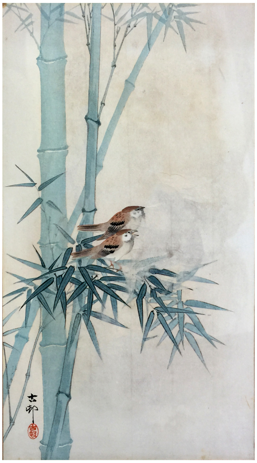 Woodblock Prints Title: Two Tree Sparrow between Bamboo