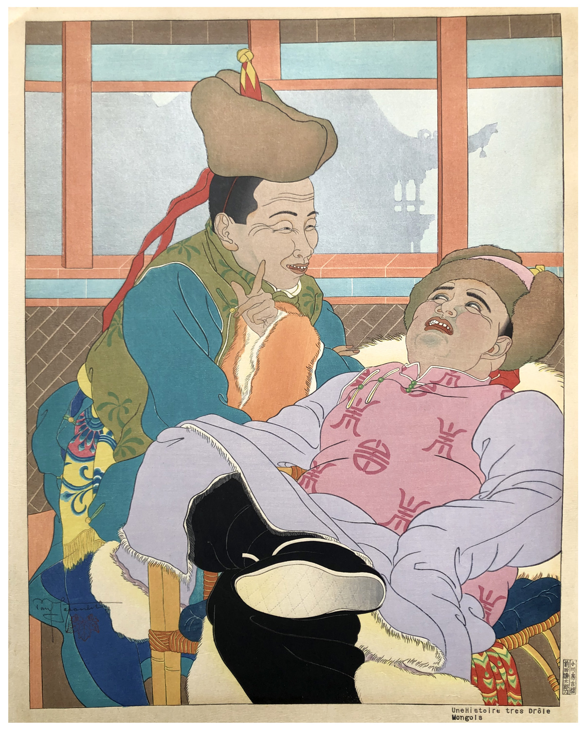 Woodblock Print Title: Une Histoire Tres Drole