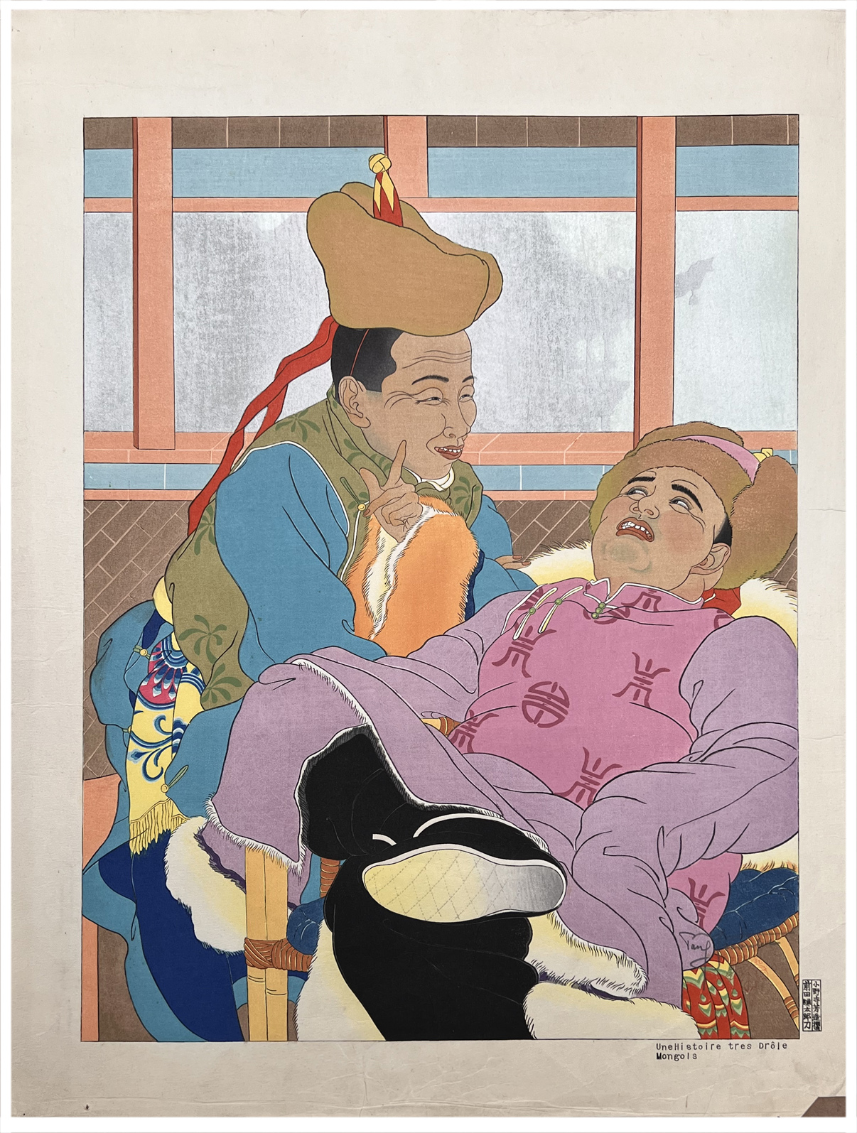Woodblock Print Title: Une Histoire Tres Drole Mongols