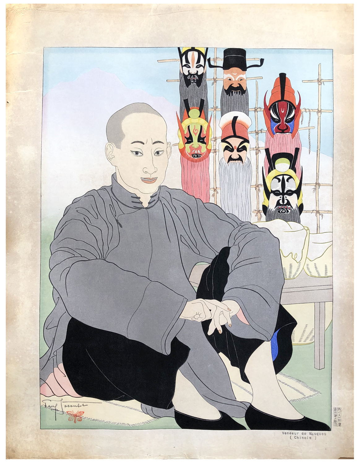 Woodblock Print Title: Vendeurs de Masques Chinois