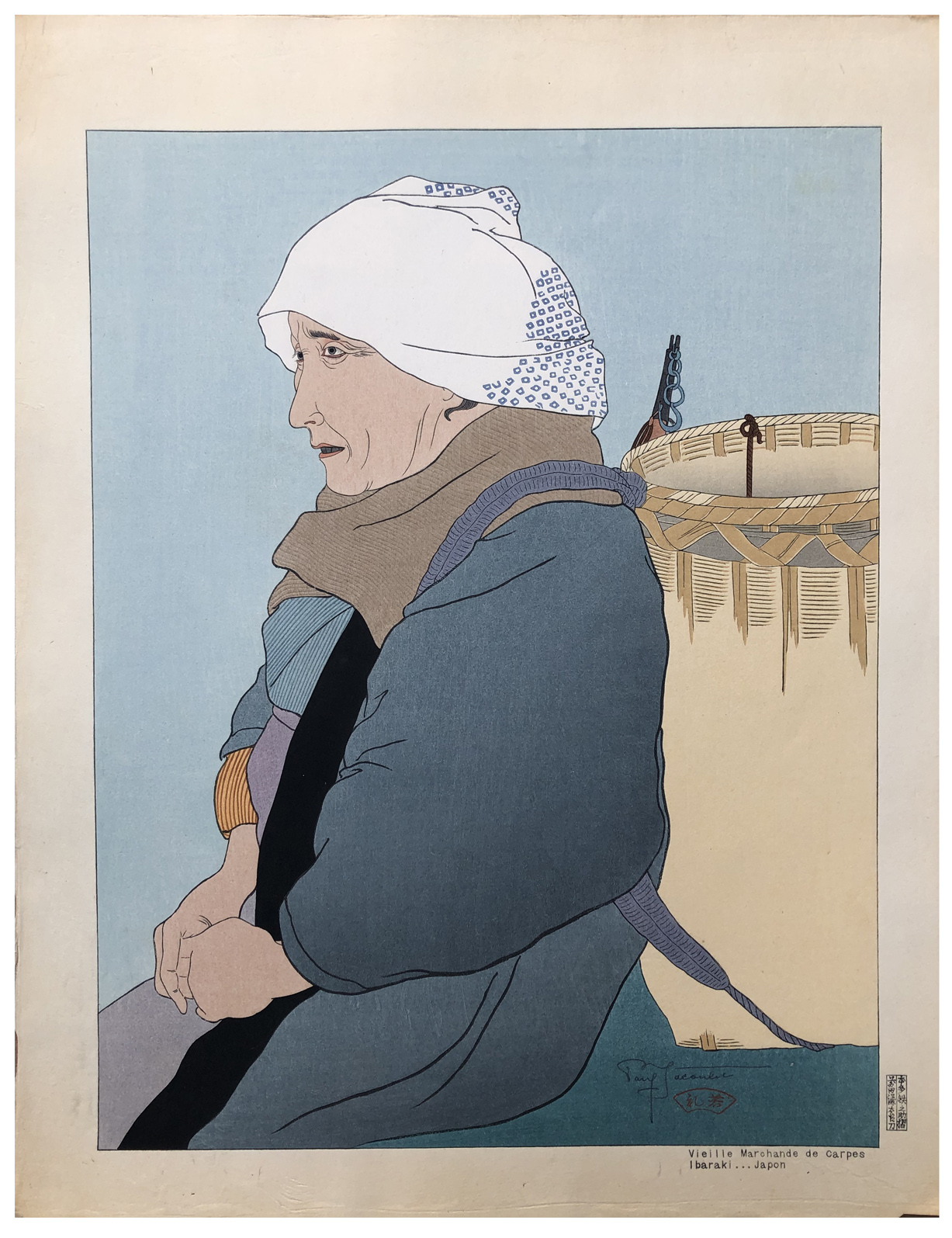 Woodblock Print Title: Vieille Marchande de Carpes, Ibaraki, Japon