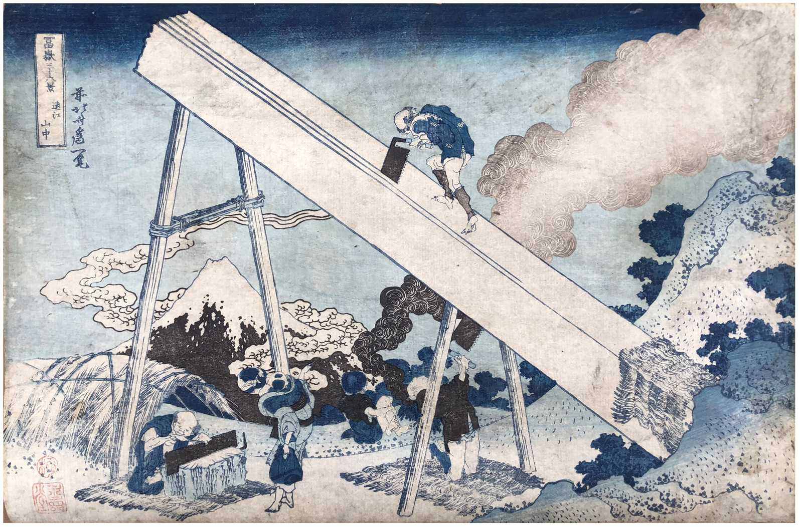 Woodblock Print Title: In the Mountains of Tôtômi Province (Tôtômi sanchû), from the series Thirty-six Views of Mount Fuji (Fugaku sanjûrokkei)