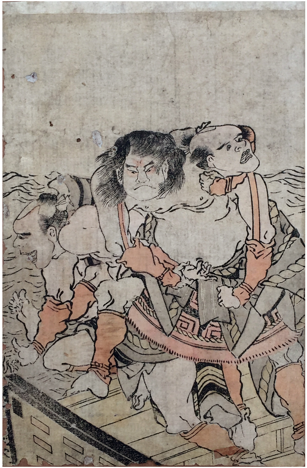Woodblock Prints Title: Warriors on Boat from the series musha waraji ( Warriors Sandalss)
