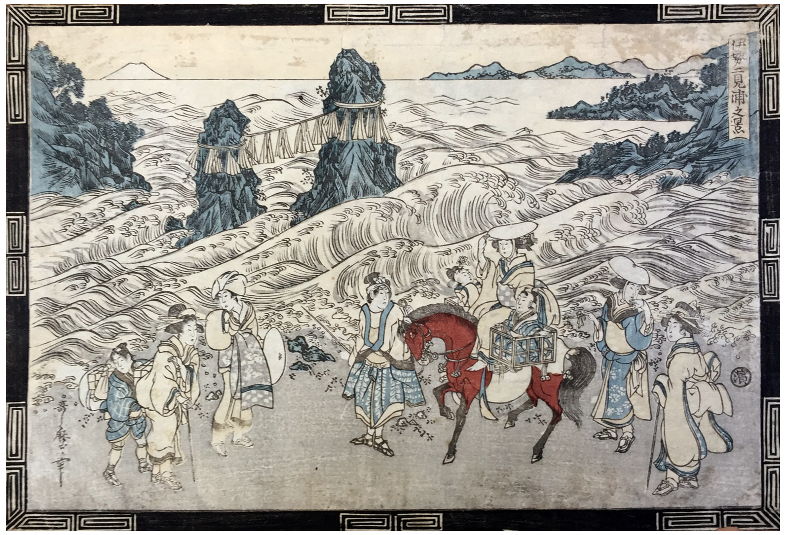 Woodblock Prints Title: Women and Horse at the Futami ga ura Beach
