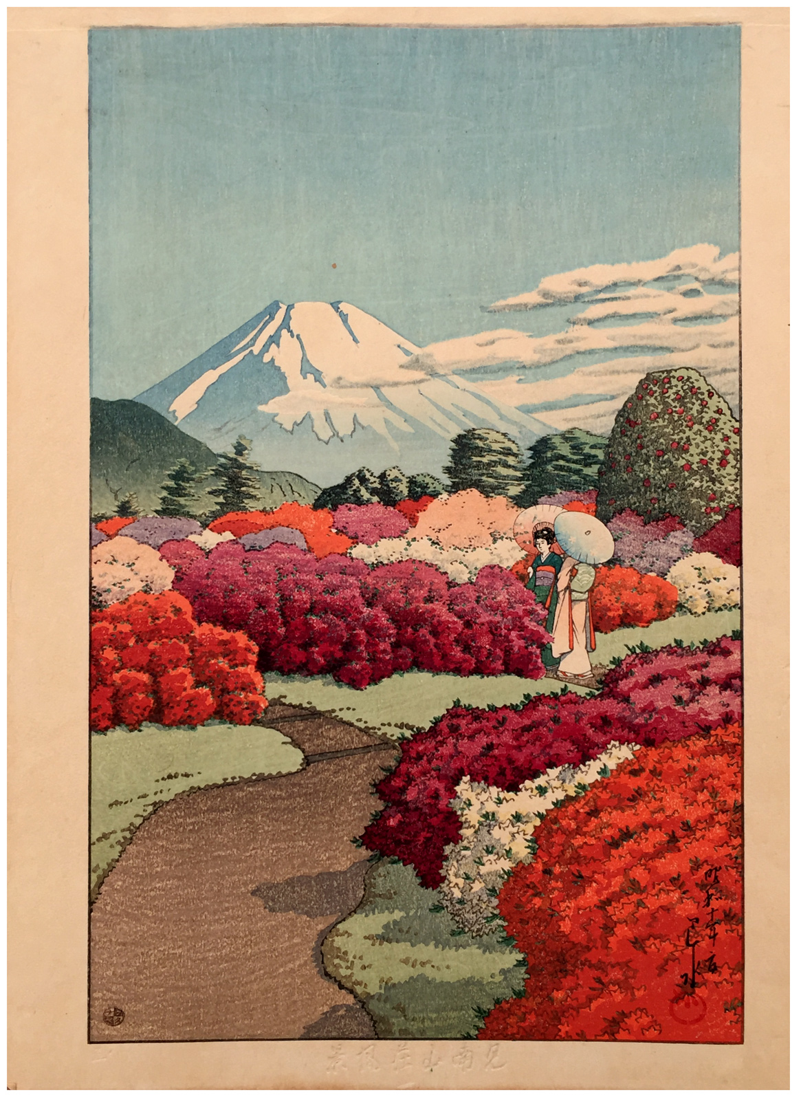 Women in Azalea Garden by Kawase Hasui 1st Ed.