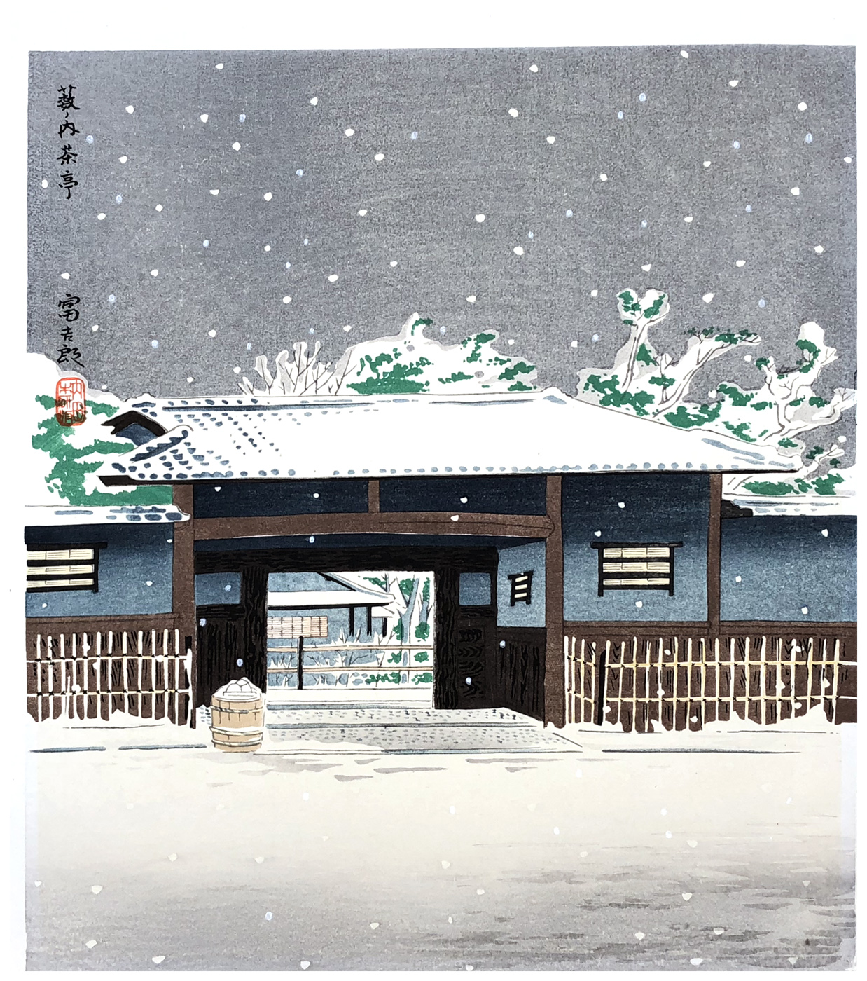 Woodblock Prints Title: Yabunouchi Tea House in Snow, from the series, "Hanga Kyoraku Ju-go Kei" (Fifteen Views of Kyoto)