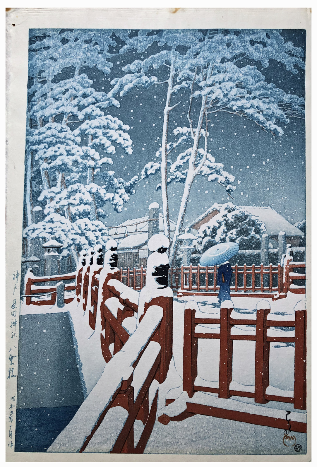 Woodblock Print Title: Yakumo Bridge at Nagata Shrine in Kôbe (Kôbe Nagata jinja Yakumobashi), from the series Collected Views of Japan II