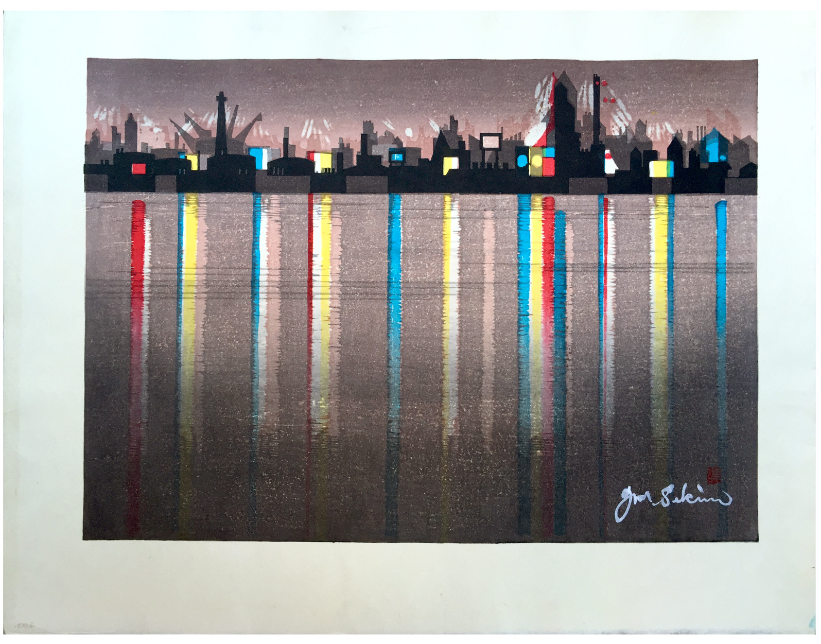 Woodblock Prints Title: Yokkaichi Oil Refinery Complex at Night from the series Fifty Three Stations of the Tökaidö (Series Number: 44)