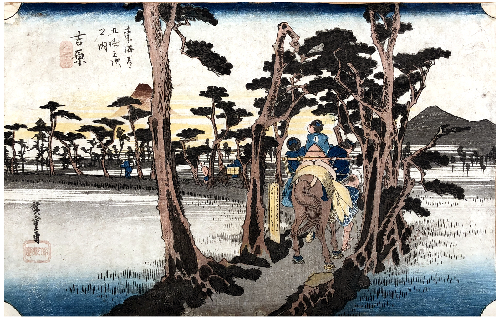 Woodblock Print Title: Yoshiwara: Mount Fuji on the Left (Yoshiwara, hidari Fuji), from the series Fifty-three Stations of the Tôkaidô Road (Tôkaido gojusan tsugi no uchi), also known as the First Tokaido or Great Tokaido