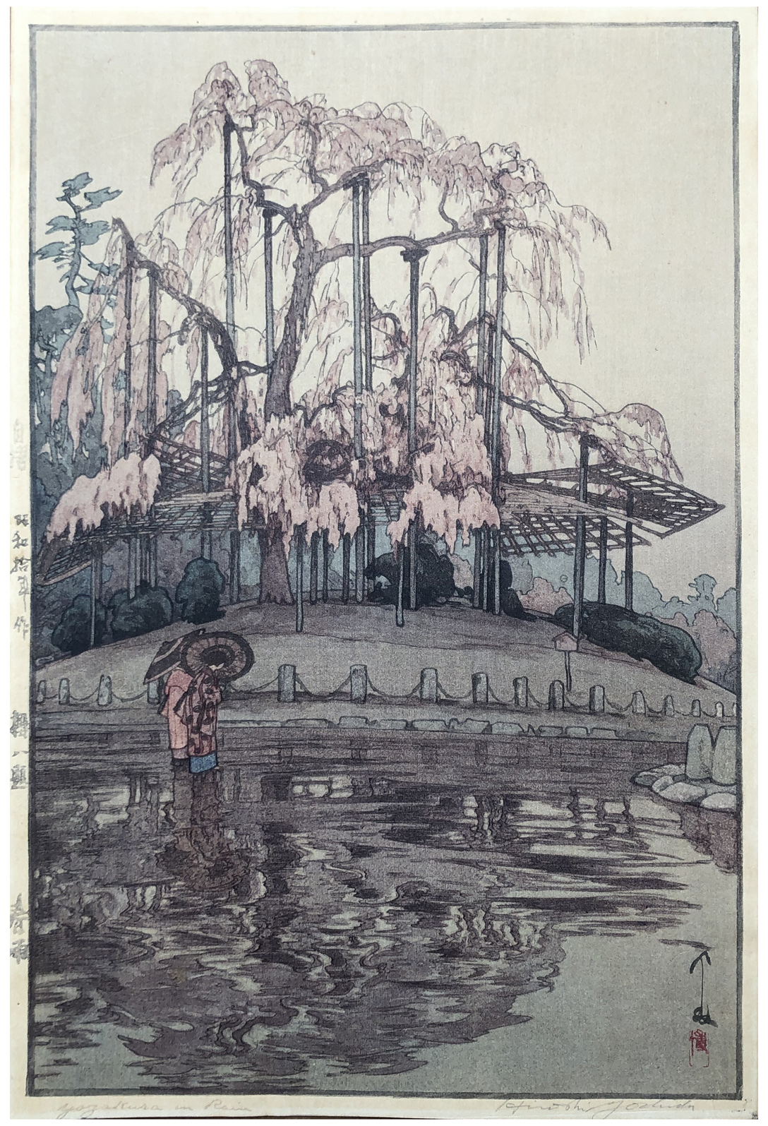 Notes: This print has the Jizuri seal and the signature is hand written with pencil, consistent with an original Hiroshi Yoshida print.