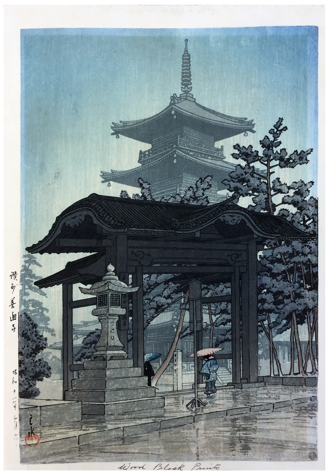 Zentsu-ji Temple in Sanuki Province by Kawase Hasui 6mm Seal