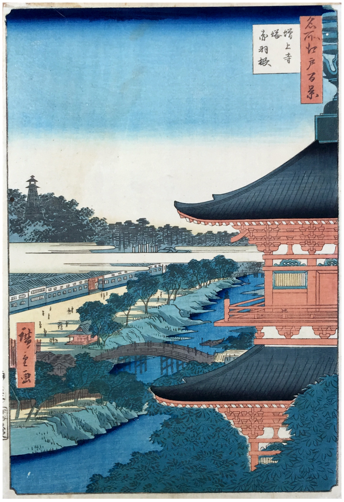 Zôjô-ji Pagoda and Akabane (Zôjô-ji tô, Akabane), from the series One Hundred Famous Views of Edo (Meisho Edo hyakkei)
