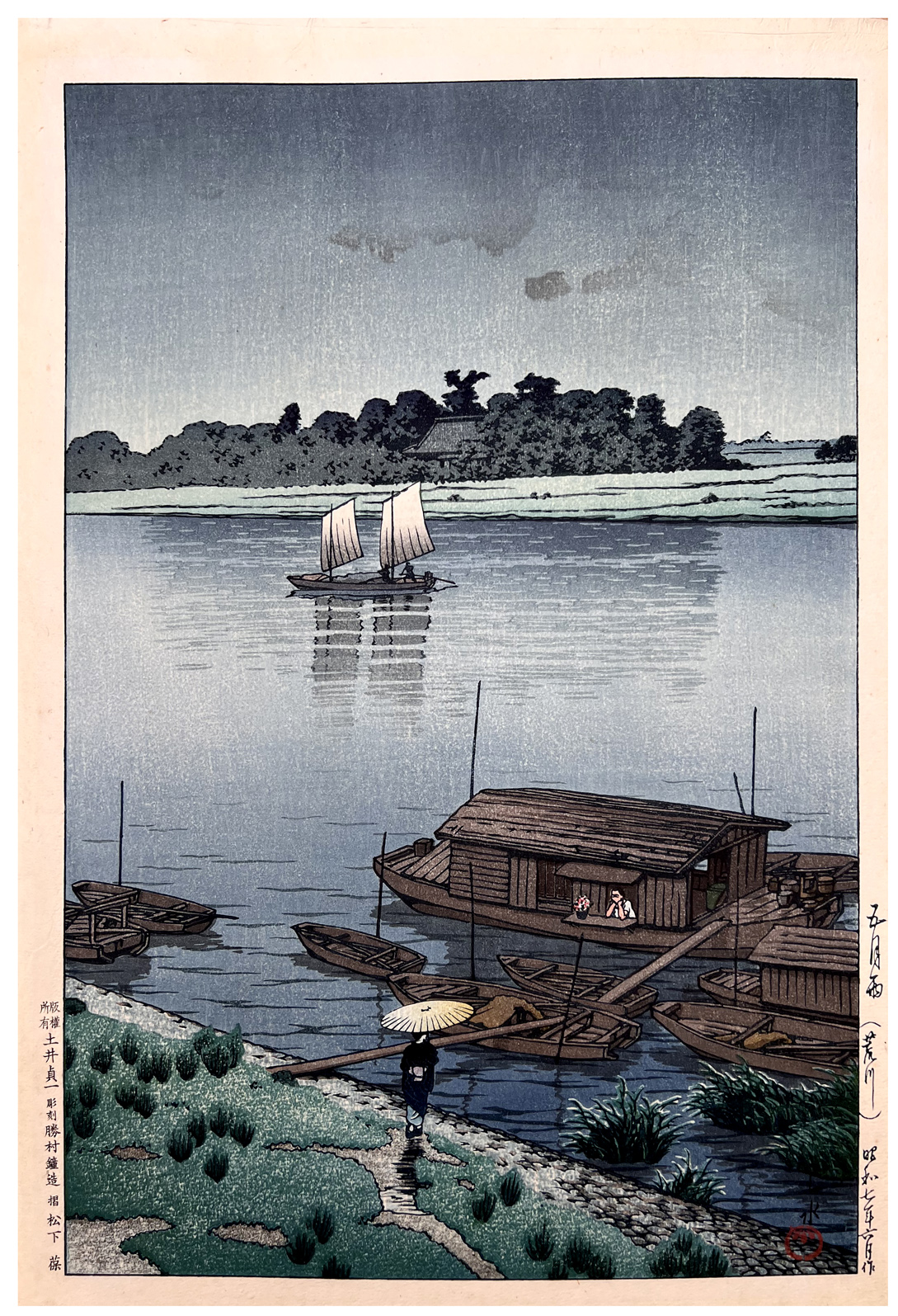 Woodblock Print Title: Arakawa River in May Rain