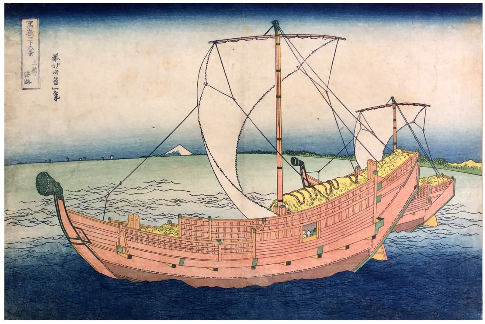 Woodblock Prints Title: At Sea off Kazusa (Kazusa no kairo), from the series Thirty-six Views of Mount Fuji (Fugaku sanjûrokkei)