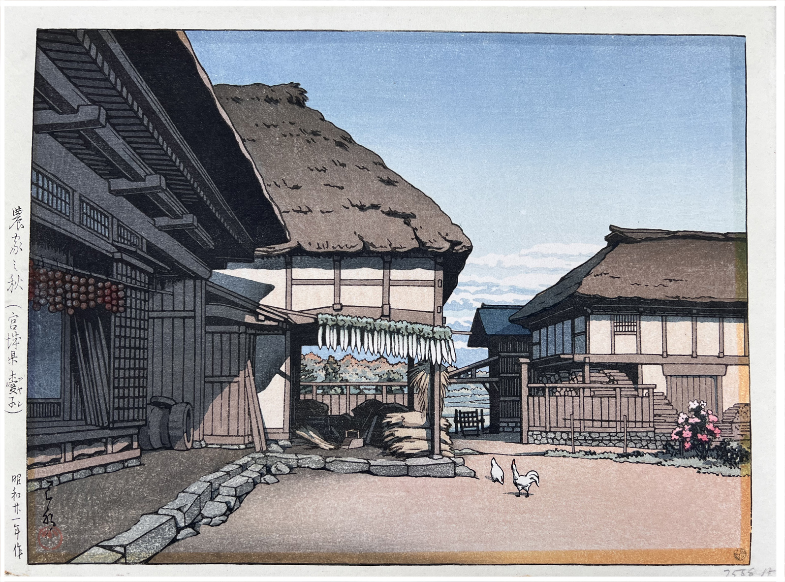 Woodblock Print Title: Autumn at a Farmhouse in Ayashi