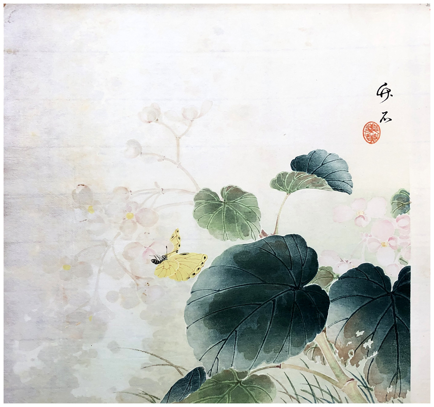 Woodblock Print Title: Begonia and a Butterfly