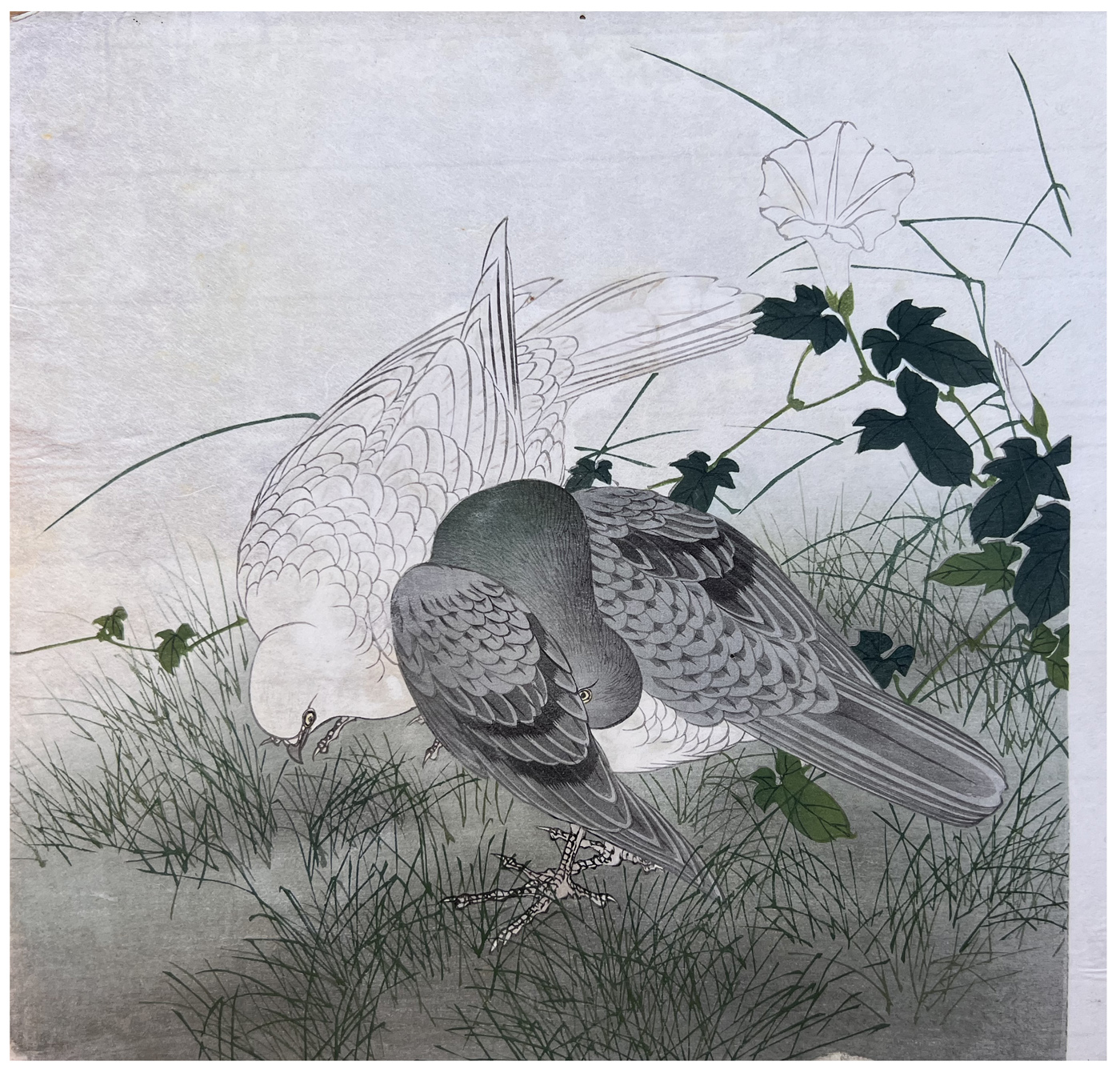 Woodblock Print Title: Bindweed, Pigeon and Dove