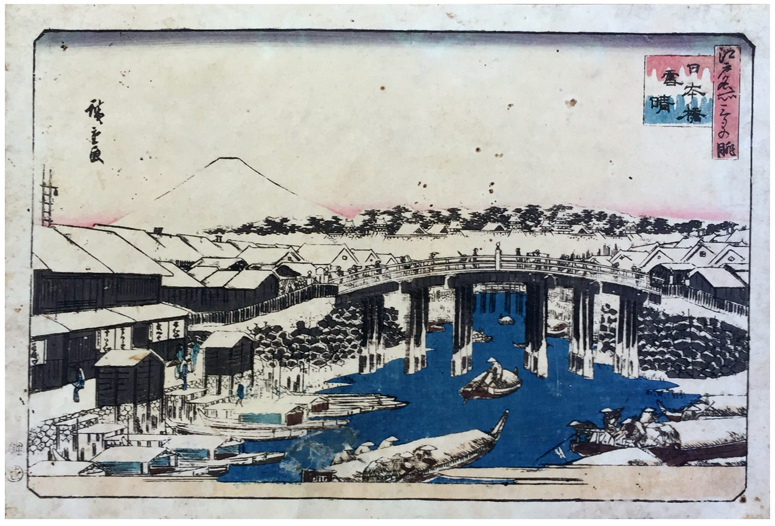 Woodblock Prints Title: Clear Weather after Snow at Nihonbashi Bridge (Nihonbashi yukibare), from the series Three Views of Famous Places in Edo (Edo meisho mittsu no nagame)