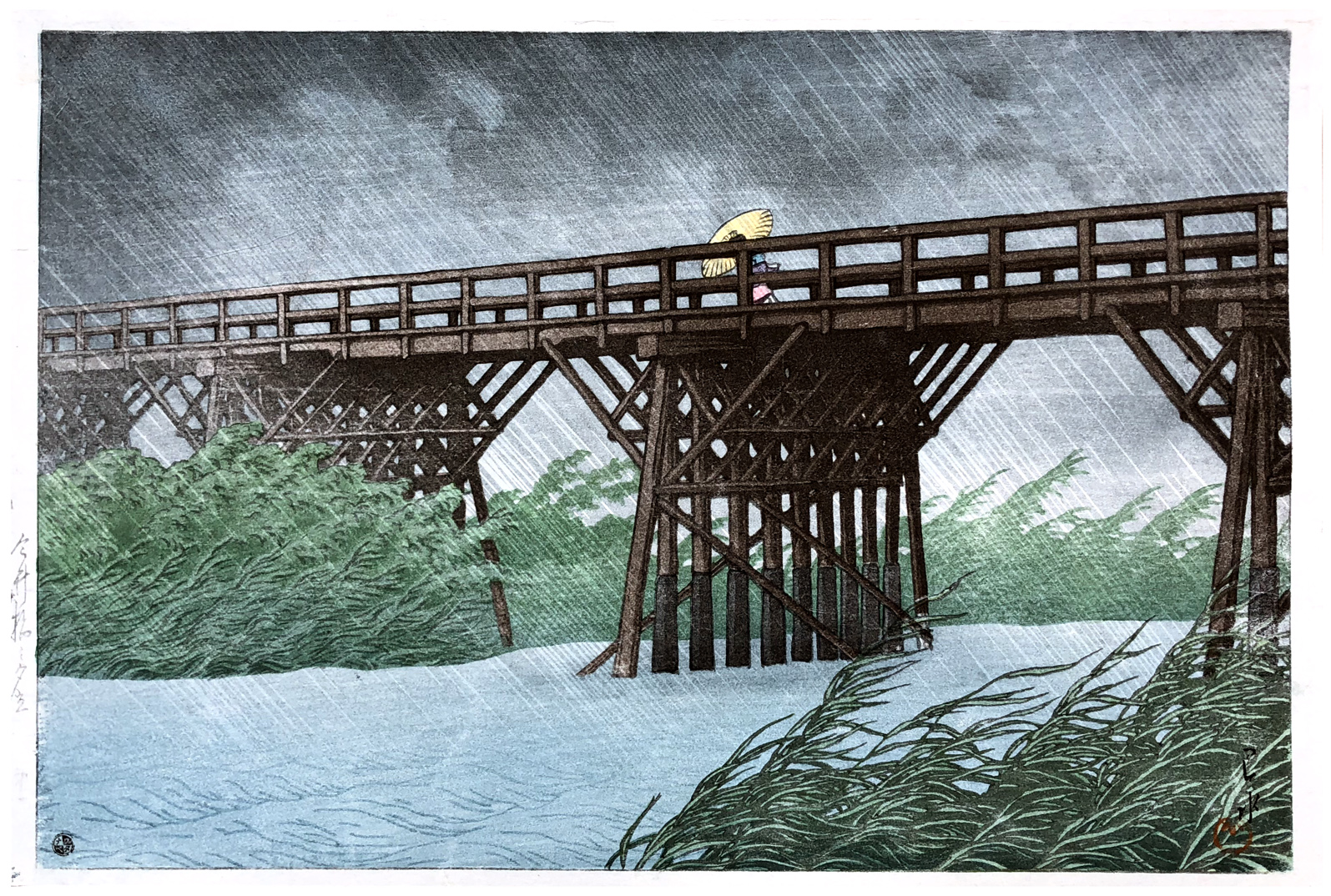 Evening Rain at Imai Bridge by Kawase Hasui 6 mm Seal