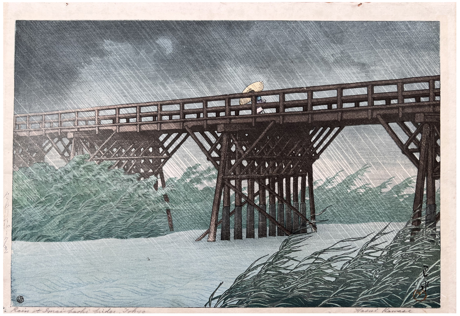 Woodblock Print Title: Evening Shower at Imai Bridge