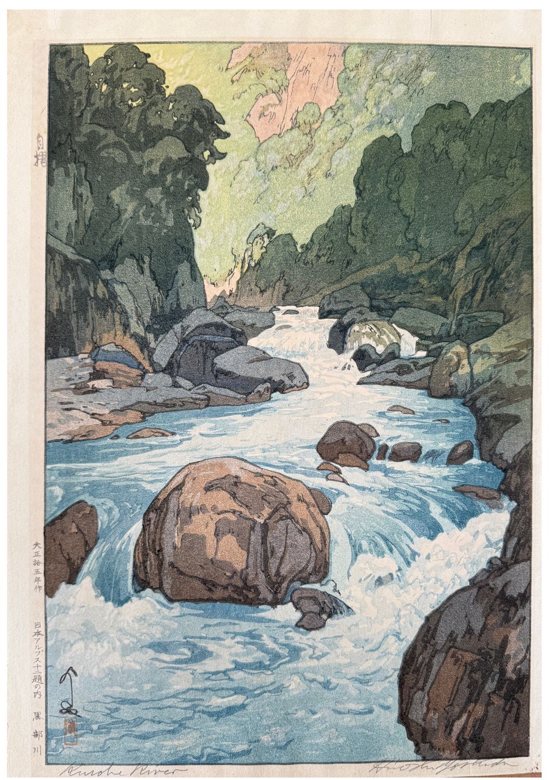 Notes: This print has the Jizuri seal and the signature is hand written with pencil, consistent with an original Hiroshi Yoshida print