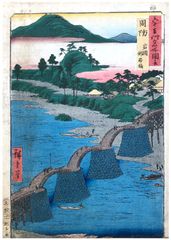 Woodblock Print Title: Suo Province: Iwakuni, Kintai Bridge (Suo, Iwakuni, Kintaikyo), from the series Famous Places in the Sixty-odd Provinces