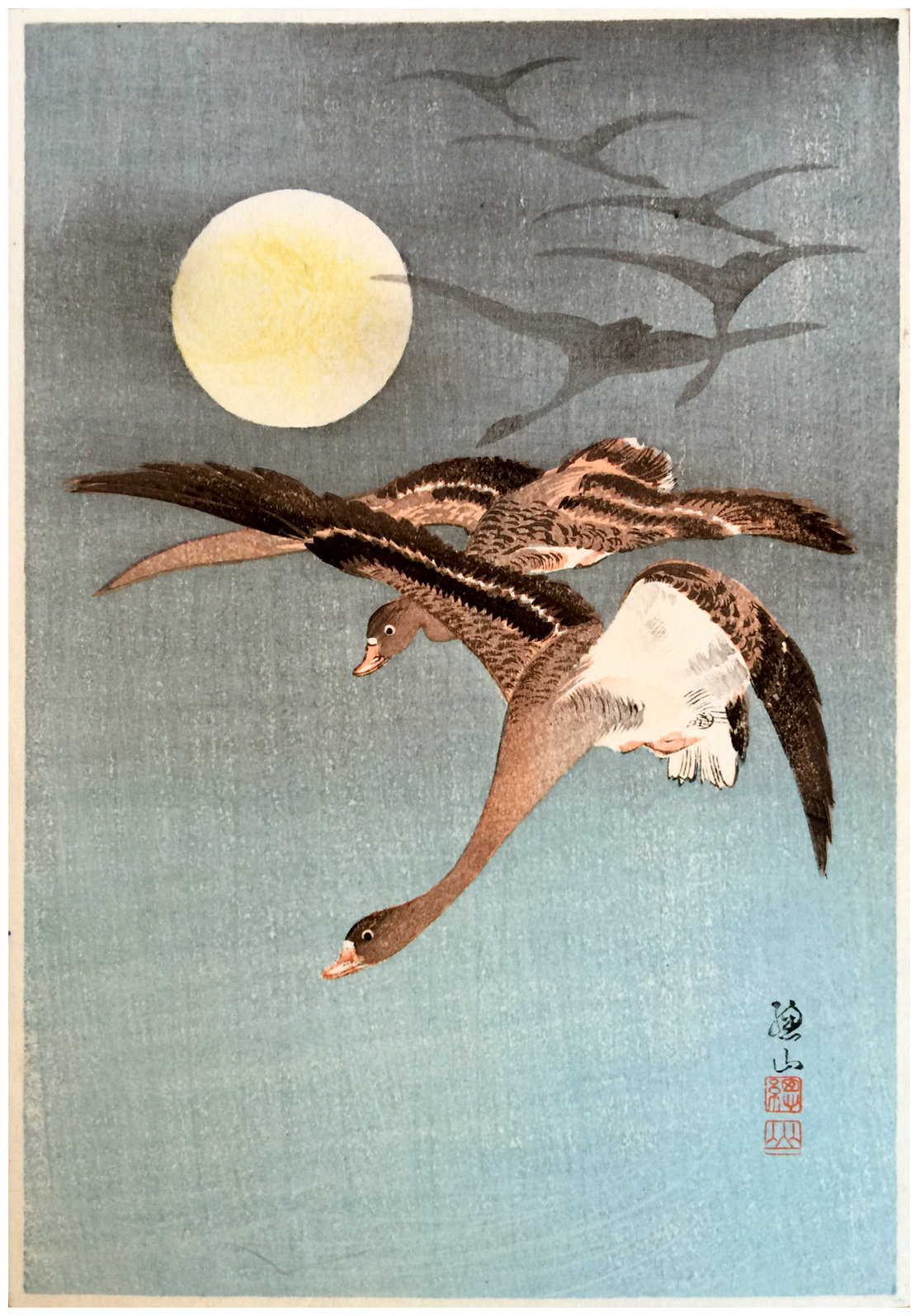 Woodblock Prints Title: Homing Geese by full moon